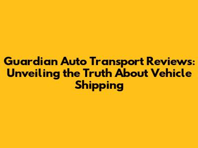 Guardian Auto Transport Reviews: Honest Insights & Guide