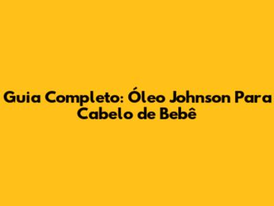 Guia Completo: Óleo Johnson Para Cabelo De Bebê