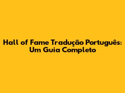 Hall Of Fame Tradução Português: Guia Completo E Detalhado