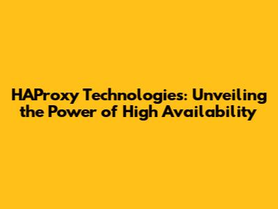 HAProxy Technologies: Unveiling The Power Of High Availability