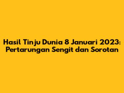 Hasil tinju dunia 8 Januari 2023 menjadi sorotan bagi para penggemar tinju di seluruh dunia. Pertarungan-pertarungan yang berlangsung pada tanggal tersebut menyajikan aksi yang mendebarkan, teknik tinju yang memukau, dan drama yang tak terlupakan di atas ring. Artikel ini akan membahas secara mendalam hasil pertandingan tinju dunia pada 8 Januari 2023, menyoroti para pemenang, momen-momen penting, dan dampaknya terhadap dunia tinju secara keseluruhan. Jadi, mari kita selami lebih dalam untuk mengetahui siapa saja yang berhasil meraih kemenangan dan bagaimana pertarungan-pertarungan ini membentuk lanskap tinju dunia.