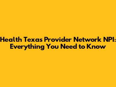 Health Texas Provider Network NPI: Everything You Need To Know