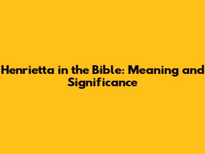 Henrietta In The Bible: Meaning And Significance