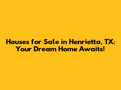 Hey there, home hunters! Are you guys dreaming of finding the perfect house in the charming town of Henrietta, Texas? Well, you've come to the right place! Finding the ideal home can be an exciting journey, and this guide is here to walk you through everything you need to know about houses for sale in Henrietta, TX. We'll cover what makes Henrietta a great place to live, how to navigate the local real estate market, and what you should consider when searching for your dream home. Get ready to explore the possibilities and discover why Henrietta might be the perfect place to put down roots!