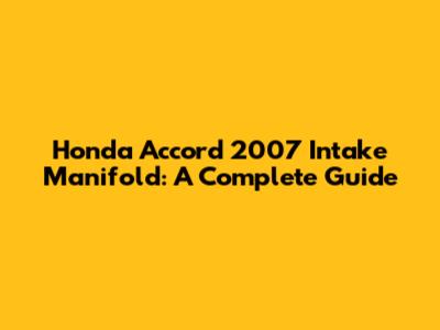 Honda Accord 2007 Intake Manifold: A Complete Guide