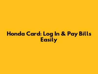 Honda Card: Log In & Pay Bills Easily