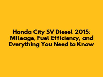 Honda City SV Diesel 2015: Real-World Mileage & Fuel Efficiency