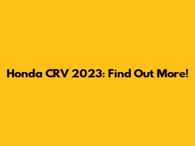 Honda CRV 2023: Find Out More!
