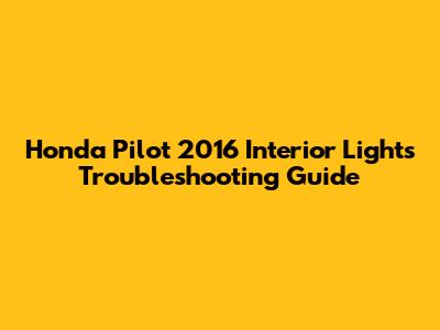 Hey guys! Are you having trouble with the interior lights in your 2016 Honda Pilot? Don't worry; you're not alone! Interior lights are super important for visibility and convenience, so when they're not working right, it can be a real pain. This guide will walk you through some common issues and how to troubleshoot them, so you can get everything lit up properly again. Let's dive in!