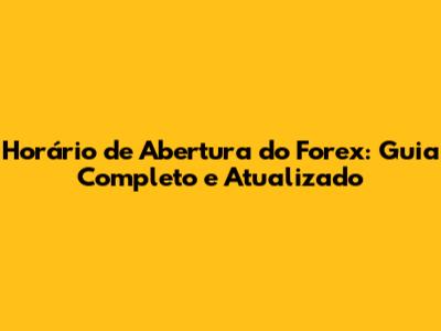 Horário De Abertura Do Forex: Guia Completo E Atualizado