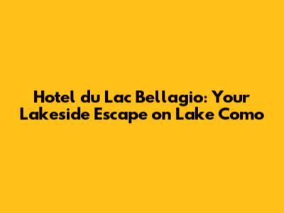 Hotel Du Lac Bellagio: Your Lakeside Escape On Lake Como