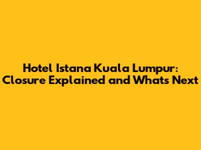 Hotel Istana Kuala Lumpur: Closure Explained And What's Next