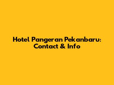 Hotel Pangeran Pekanbaru: Contact & Info