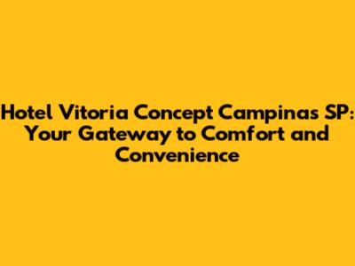 Hey there, travel enthusiasts! If you're planning a trip to the vibrant city of Campinas, Brazil, and searching for a top-notch hotel experience, look no further than Hotel Vitoria Concept Campinas SP. This hotel is more than just a place to rest your head; it's a hub of comfort, convenience, and style, designed to cater to both business and leisure travelers. Let's dive deep into what makes this hotel a fantastic choice, shall we?