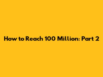 How To Reach 100 Million: Part 2