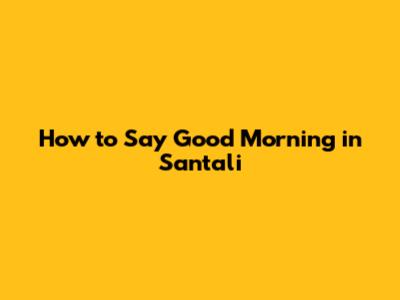 How To Say 'Good Morning' In Santali