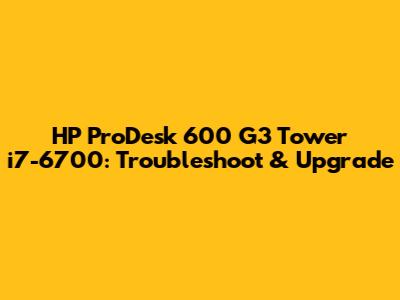 HP ProDesk 600 G3 Tower I7-6700: Troubleshoot & Upgrade