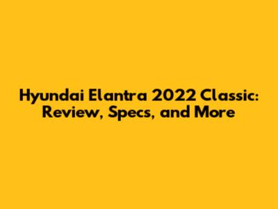 Hyundai Elantra 2022 Classic: Review, Specs, And More