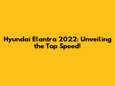 Hyundai Elantra 2022: Unveiling The Top Speed!