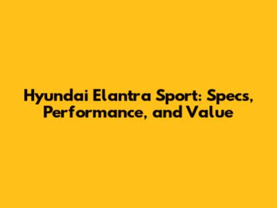 Hyundai Elantra Sport: Specs, Performance, And Value