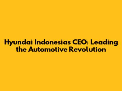 Hyundai Indonesia's CEO: Leading The Automotive Revolution