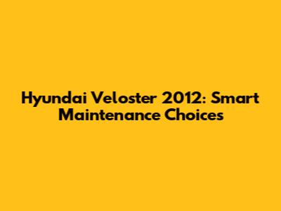 Hyundai Veloster 2012: Smart Maintenance Choices