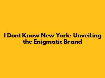 I Don't Know New York: Unveiling The Enigmatic Brand