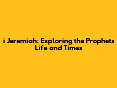 I Jeremiah: Exploring The Prophet's Life And Times