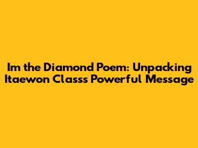 Hey guys! Ever watched a drama that just sticks with you? For me, that drama is definitely Itaewon Class. Beyond the compelling storyline and the charismatic characters, there's this one poem that really hit me hard: "I'm the Diamond." It's not just a poem; it's like, the heart of the whole show! This poem encapsulates the essence of Park Sae-ro-yi's resilience and unwavering spirit in the face of crazy adversity. So, let's dive deep into this powerful piece and explore why it resonates so deeply with so many of us.