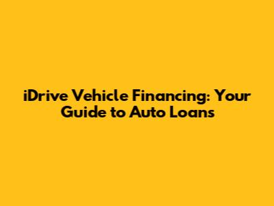 iDrive vehicle financing is a specific program or service designed to help individuals finance the purchase of a vehicle. iDrive may offer a range of financing options, such as traditional auto loans, leasing programs, or specialized financing for certain types of vehicles. The details of iDrive's offerings, including interest rates, loan terms, and eligibility requirements, can vary. It's important to research and compare iDrive's offerings with those of other lenders to determine if it's the right fit for your needs.