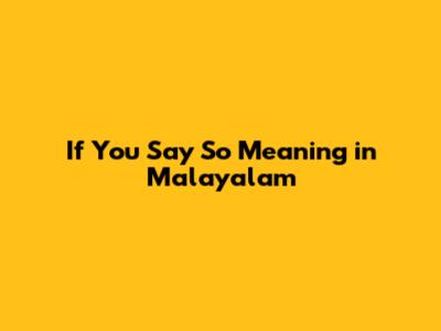 Now, letโs explore how you would express "if you say so" in Malayalam. Malayalam, being a rich and expressive language, offers several ways to convey this sentiment. Here are some common options: