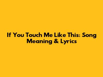 If You Touch Me Like This: Song Meaning & Lyrics