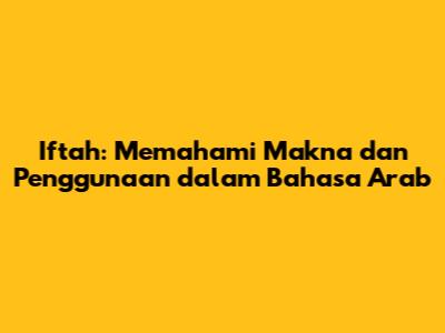 Iftah: Memahami Makna Dan Penggunaan Dalam Bahasa Arab