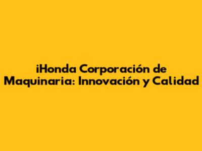 IHonda Corporación De Maquinaria: Innovación Y Calidad