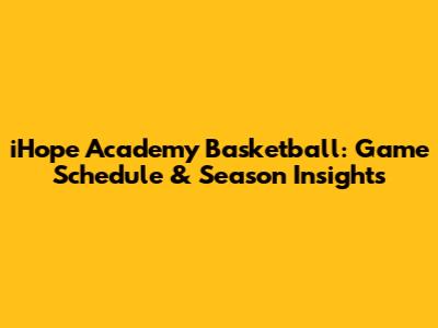 IHope Academy Basketball: Game Schedule & Season Insights