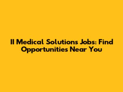 II Medical Solutions Jobs: Find Opportunities Near You
