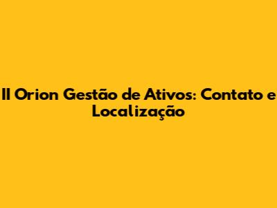 II Orion Gestão De Ativos: Contato E Localização