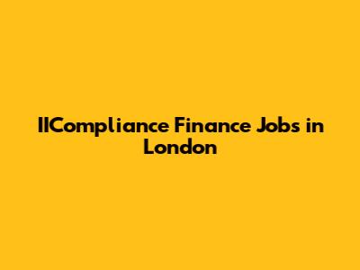IICompliance Finance Jobs In London