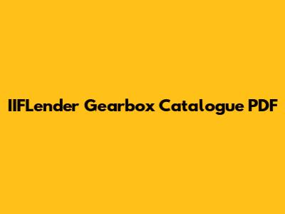 IIFLender Gearbox Catalogue: Your PDF Guide