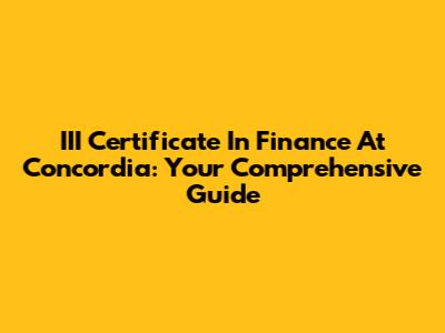 III Certificate In Finance At Concordia: Your Comprehensive Guide