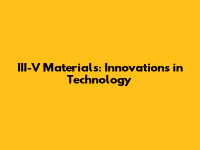 III-V Materials: Innovations In Technology