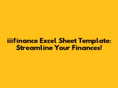 Iiifinance Excel Sheet Template: Streamline Your Finances!