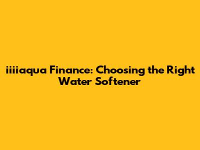Iiiiaqua Finance: Choosing The Right Water Softener