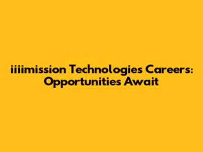 Iiiimission Technologies Careers: Opportunities Await
