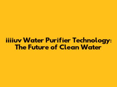 Iiiiuv Water Purifier: Cutting-Edge Tech For Pure Water