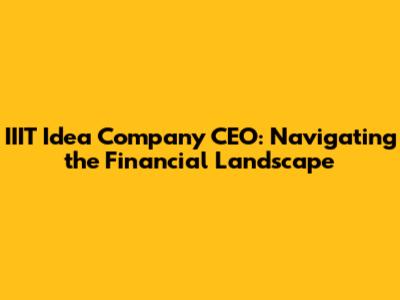 IIIT Idea Company CEO: A Financial Leader's Journey