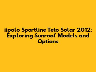 Hey guys! Let's dive into the iipolo Sportline Teto Solar 2012, focusing on what you need to know about its sunroof features. Whether you're a prospective buyer, current owner, or just a car enthusiast, understanding the specifics of the sunroof options available for this model can enhance your appreciation and knowledge.