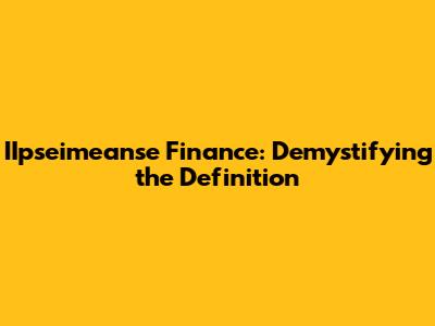What is IIpseimeanse Finance? Unveiling the Basics