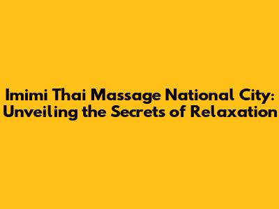 Hey guys, are you feeling stressed, achy, or just in need of some serious chill time? Well, if you're in National City, California, and looking for a slice of paradise, then Imimi Thai Massage might just be your golden ticket. This article is your ultimate guide, breaking down everything you need to know about experiencing the magic of Imimi Thai Massage in National City. We're talking about the treatments, the benefits, the experience, and why it's becoming a go-to for locals and visitors alike. So, buckle up, and let's dive into the world of traditional Thai massage, right here in the heart of National City!
