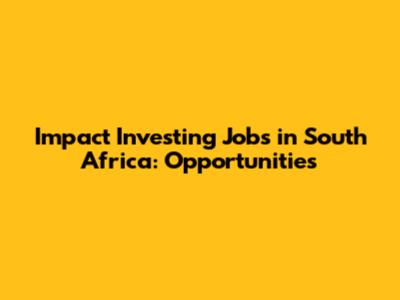 Types of Impact Investing Jobs in South Africa